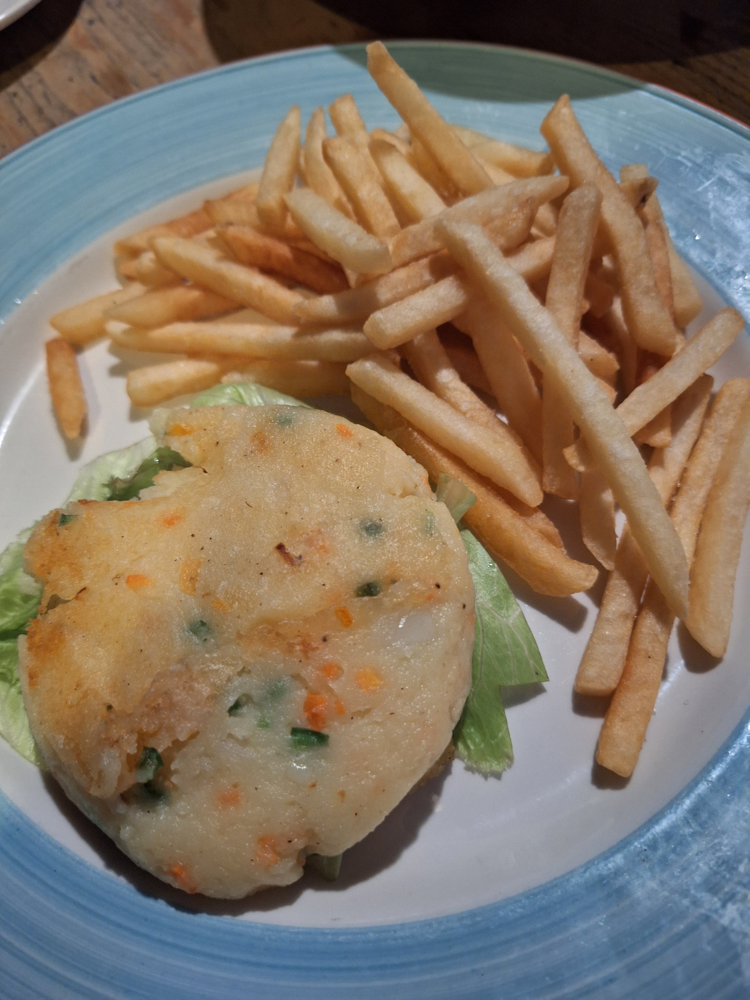 What arrived was a deep-fried ball of mashed potato—with a couple of sad carrot flecks thrown in for color—served alongside… wait for it… chips (or fries, if you’re reading this from the U.S.).