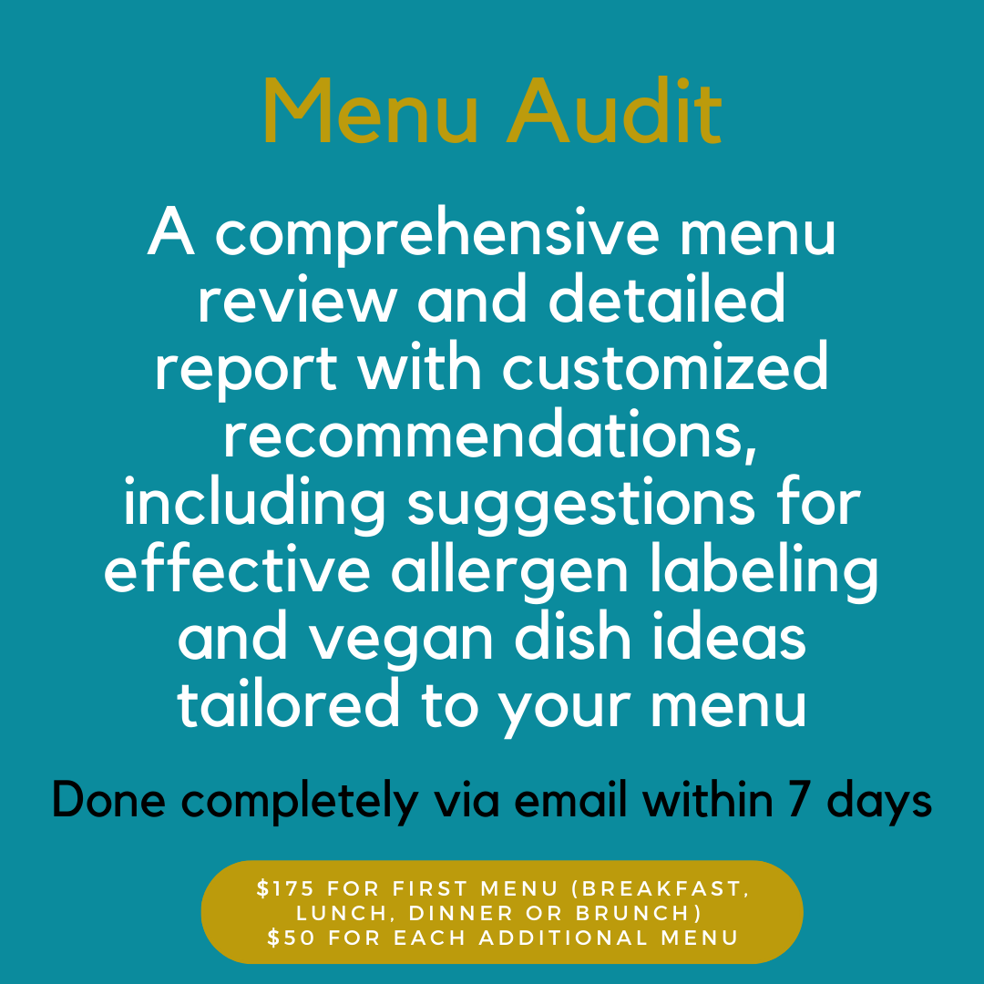 Ready to make your menu more attractive to vegan and plant curious guests? Try out our most popular introductory service by receiving a professional menu audit or menu evaluation. Choose your package and make your request via the form below.